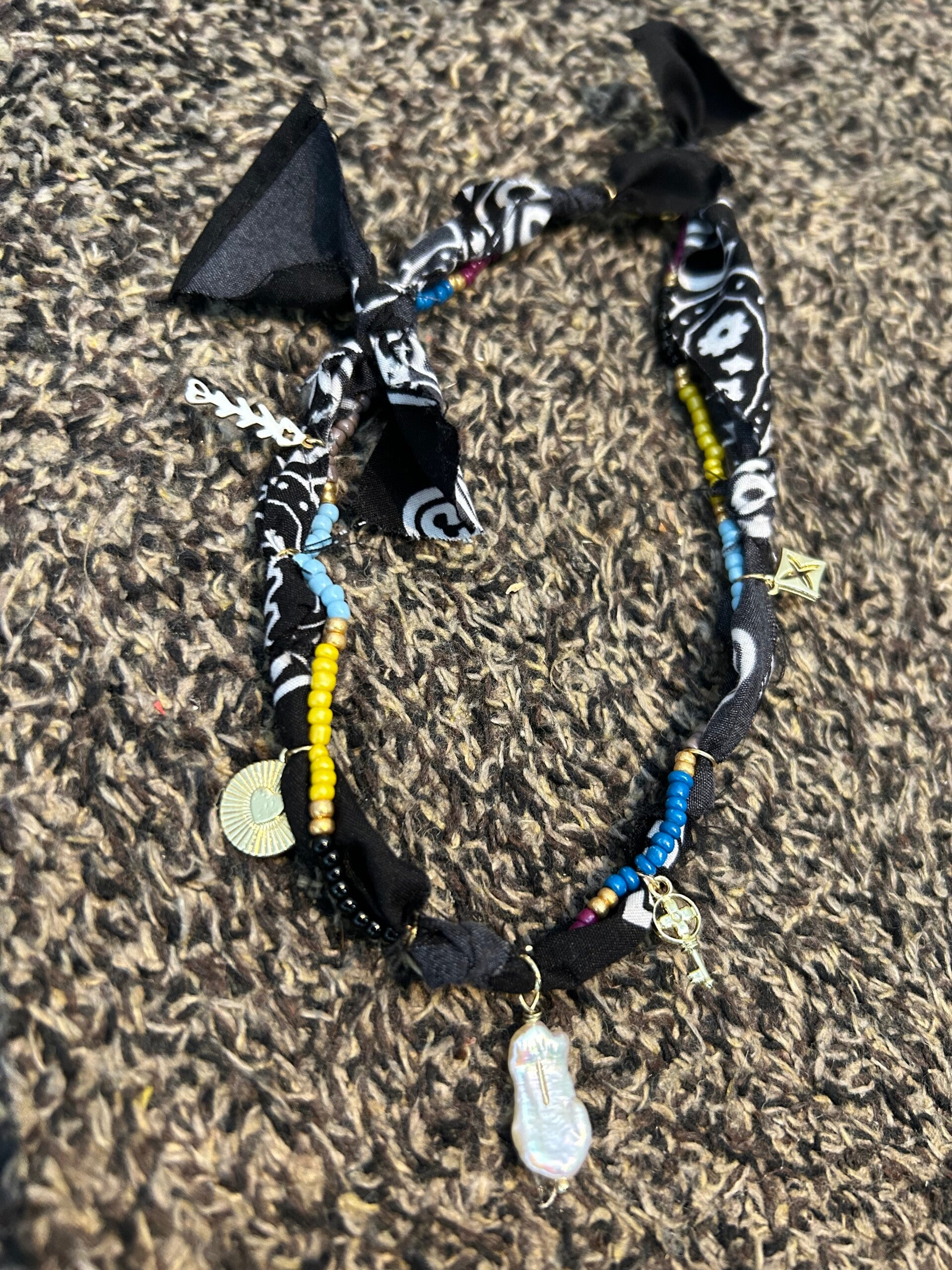 Laten wij nu net de unieke combinatie voor jullie hebben kunnen maken tussen een kralen ketting en een bandana.