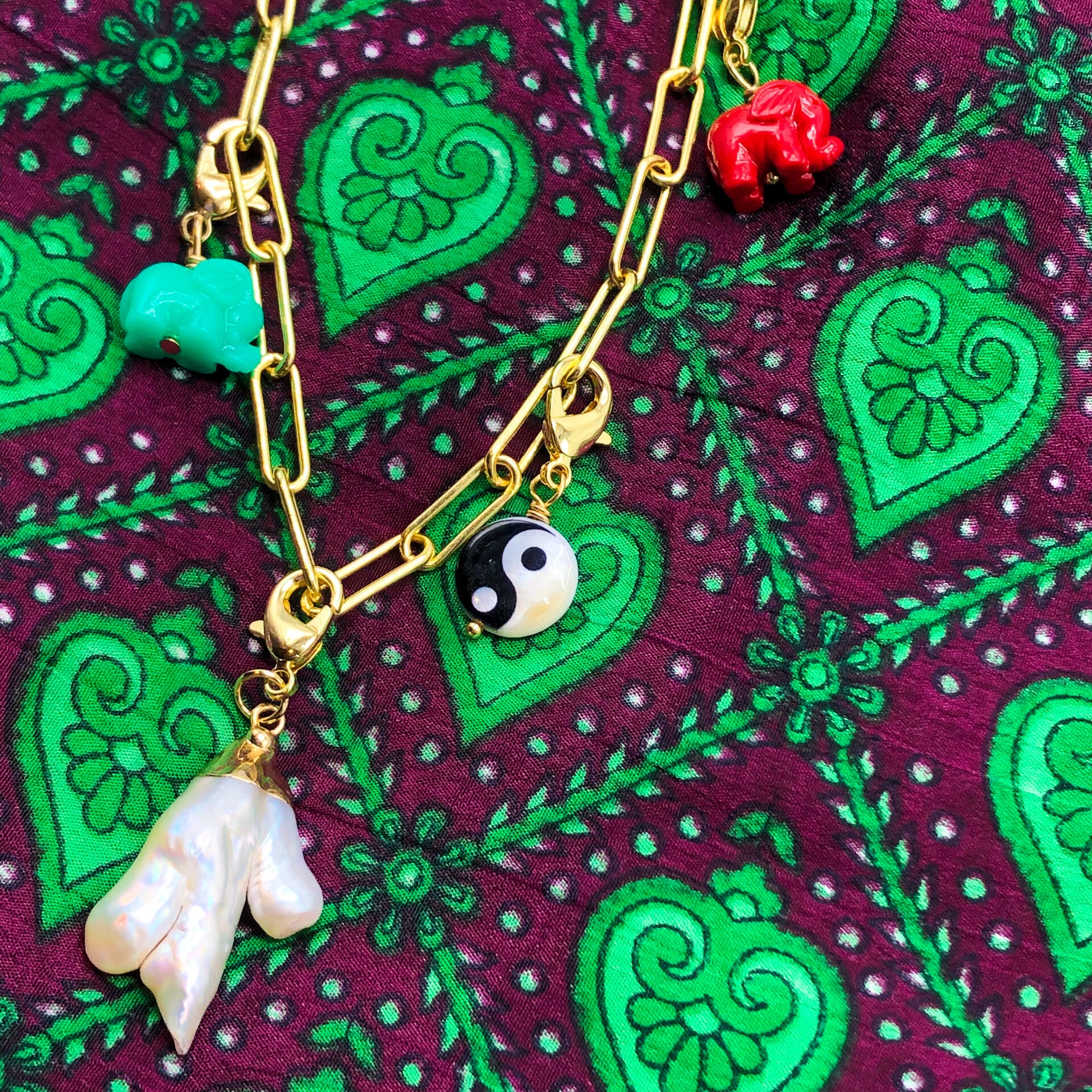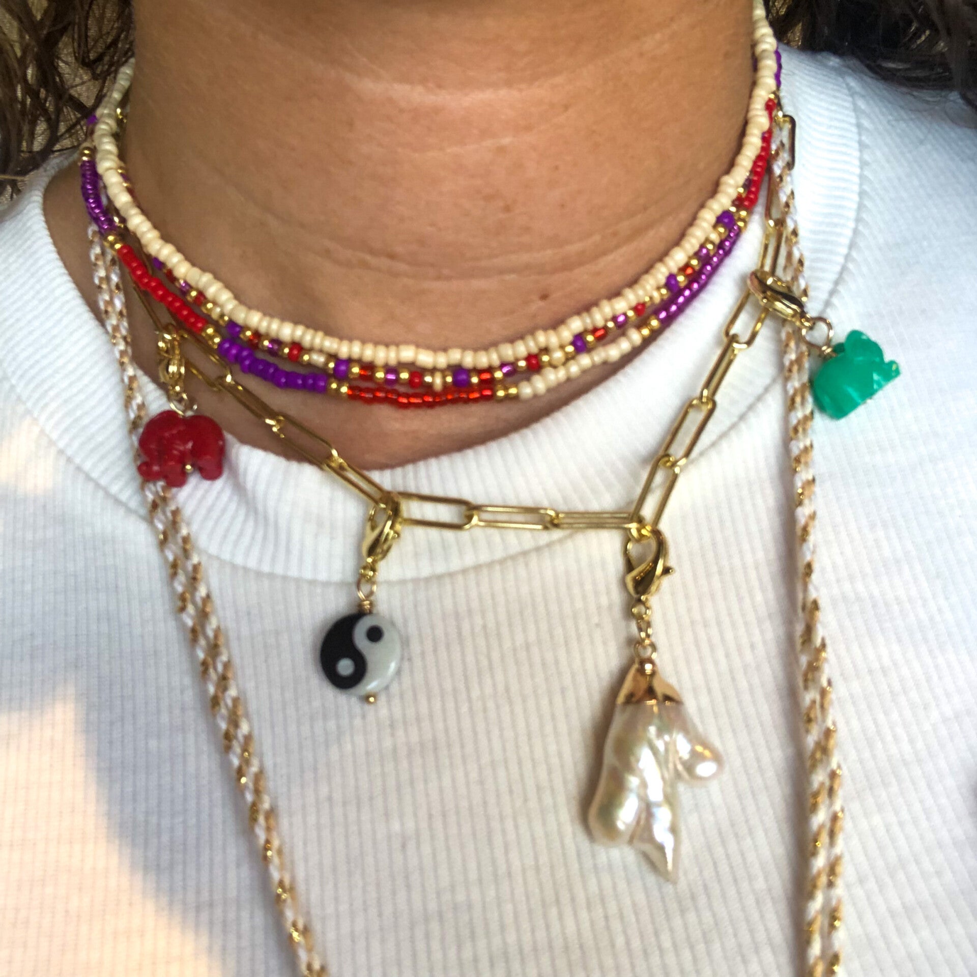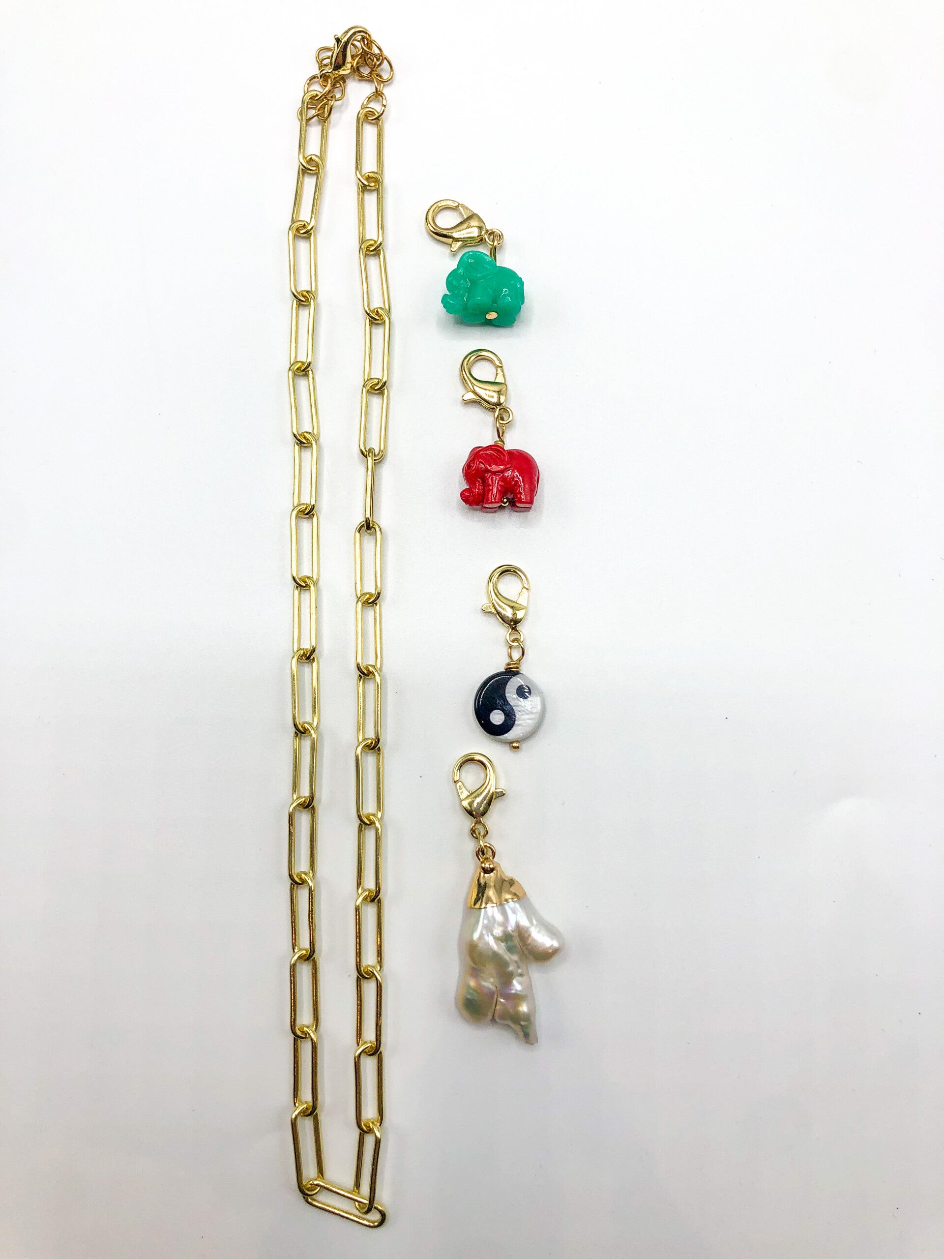 Deze te gekke goudkleurige schakel ketting met 4 losse bedels kun je zelf samen stellen! Je kunt deze ketting op elke gelegenheid aanpassen met slechts één of meerdere bedels geschikt voor elk moment! (4 bedels zijn inclusief)
