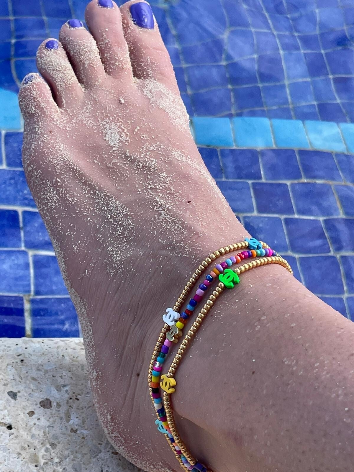 Het geweldige concept van onze best sellende armbandjes is nu ook verkrijgbaar in een enkelbandjes variant! Daarin zitten twee goldie's met de gouden goldplated kralen met gekleurde eye catchers en een mix colour variant met gouden eyecatchers!
