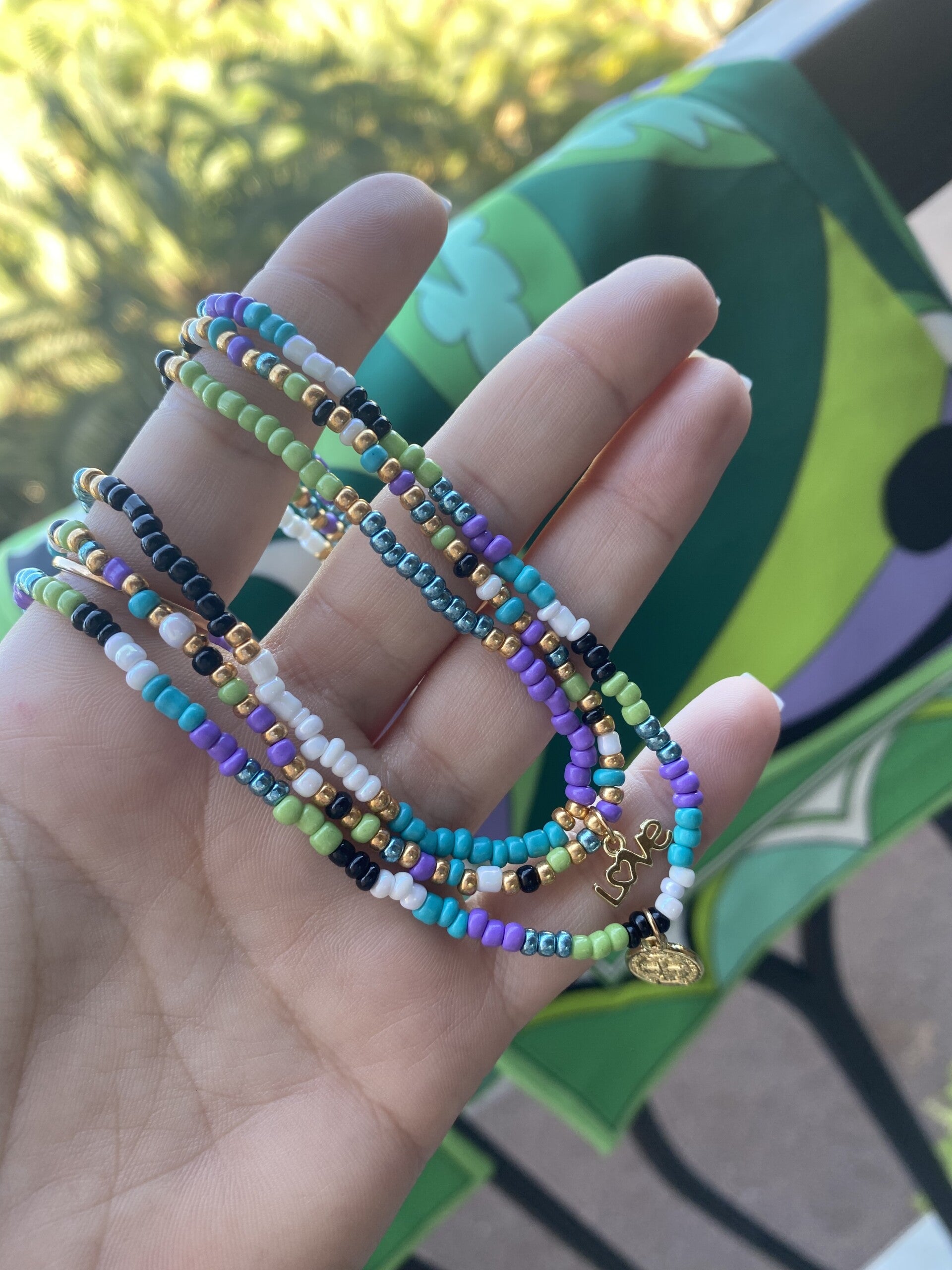 Elk setje word speciaal voor u gemaakt en u heeft zelf de keuze uit twee bedeltjes deze kunt u met nummers aangeven bij de opmerkingen! Maakt u geen keuze, dan worden automatisch de bedels van de foto gebruikt.